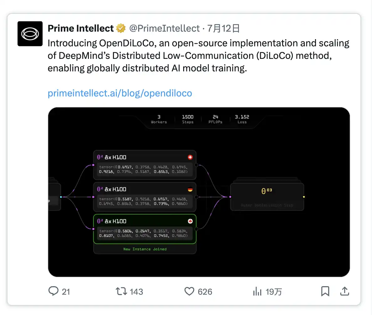 · Prime Intellect 最近开源了支持全球分布式 GPU 协作模型开发的框架,任何人都可使用该代码。