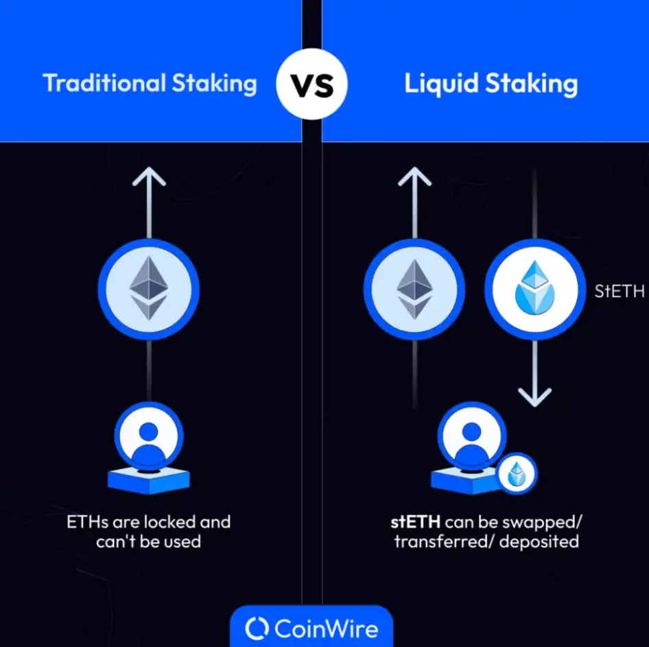 尽管这些服务允许质押任意数量的 ETH,但质押的 ETH 仍处于「锁定」状态,无法访问,直到解除质押(需要几天时间)。流动性质押作为一种创新的替代方案应运而生,它铸造一种流动性代币以换取用户的 ETH 存款。流动性代币代表他们质押的 ETH,这些 ETH 会累积奖励,并可用于参与 DeFi 活动以增加收益。Lido 是流动性质押的先驱,随后 Rocket 和 Stader 等公司也紧随其后。这些解决方案不仅使质押更易获得,而且还提高了投资者的灵活性和潜在回报。