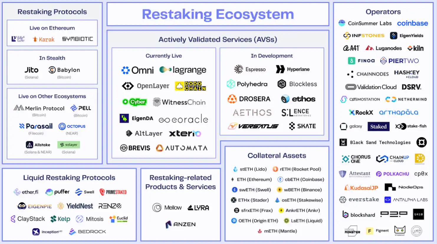 虽然 Eigenlayer 是第一个再质押协议,但其他一些协议也成为了竞争对手。虽然它们都旨在使用再质押的资产来提供安全性,但它们之间存在细微的差异,我们将在下一节中讨论这些差异。