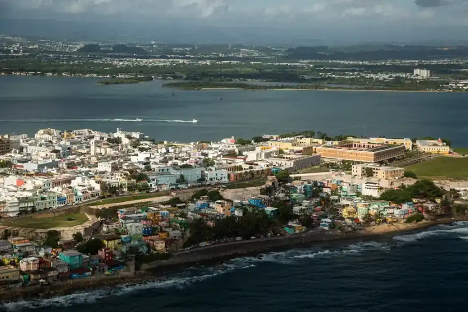 波多黎各圣胡安的鸟瞰图。Pierce 带领一批投资者来到波多黎各,他们致力于将这片美国领土转变为加密货币投资者和科技初创企业的中心