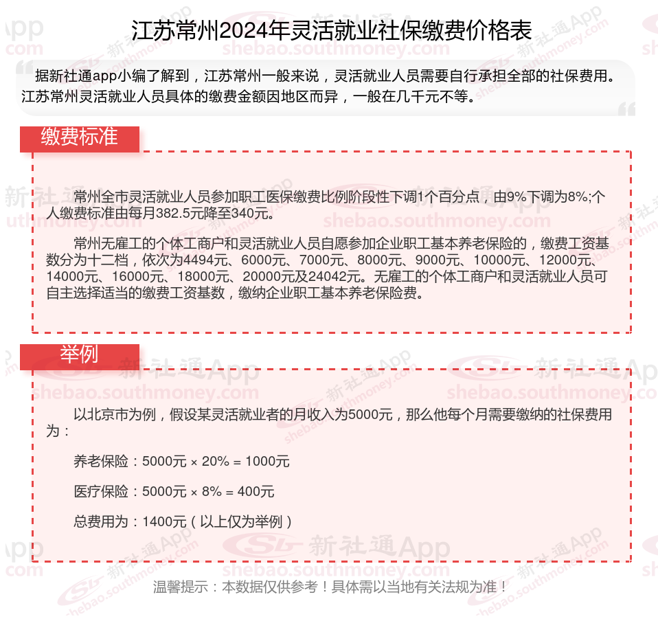 二、江苏常州2024年灵活就业社保缴费基数、比例最新消息