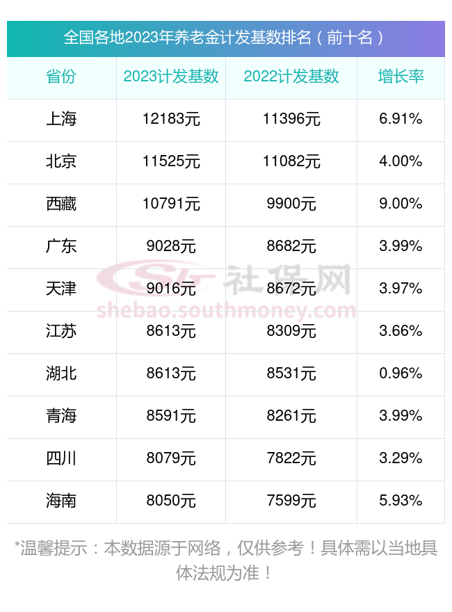 随着贵州安顺公布计发基数,大家都知道养老金计发基数目前在全国排名前几位的情况如何呢?在这里简单分享一下: