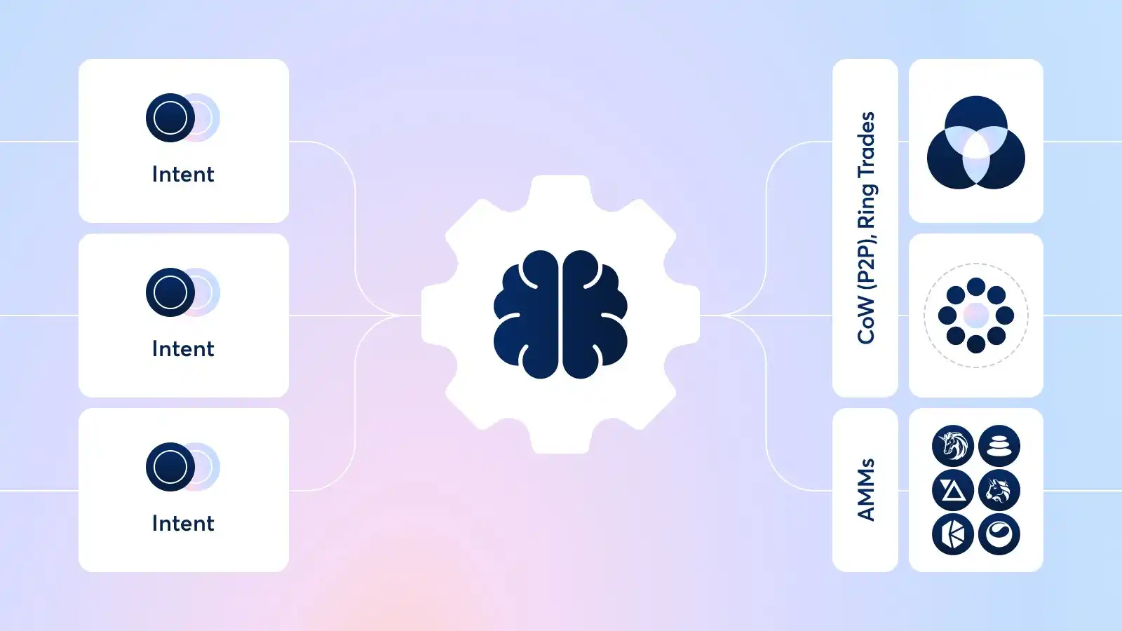CoW Swap 提供了一种交换服务,通过链下批量拍卖系统保护交易者免受如抢跑、尾随交易或三明治攻击等 MEV(最大可提取价值)攻击。在 CoW Swap 中,交易者不会直接在链上结算交易,而是将交易代币的意图提交给协议。当这些交易者的交易被打包成一个链下批次时,名为 Solver 的第三方实体会从 AMMs(如 Uniswap、Balancer)和 DEX 聚合器(如 1inch)等渠道中找到最佳的交易路径。这使得交易者可以免受 MEV 的影响,并以最佳价格进行交易。