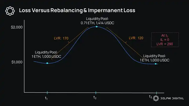 在这里,LVR(再平衡损失)是一个风险管理指标,它量化了 LP 在提供流动性期间,由于 AMM 内部资产价格与外部市场价格之间因资产价格波动而产生的差异所带来的套利机会所造成的损失。
