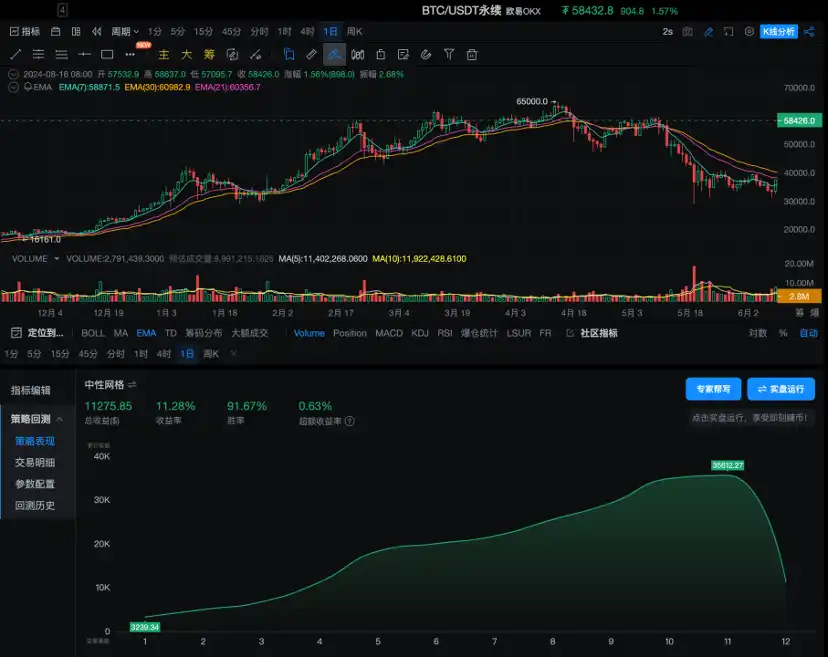 该模型为:震荡向上 1 日运行周期下的中性合约网格与现货网格