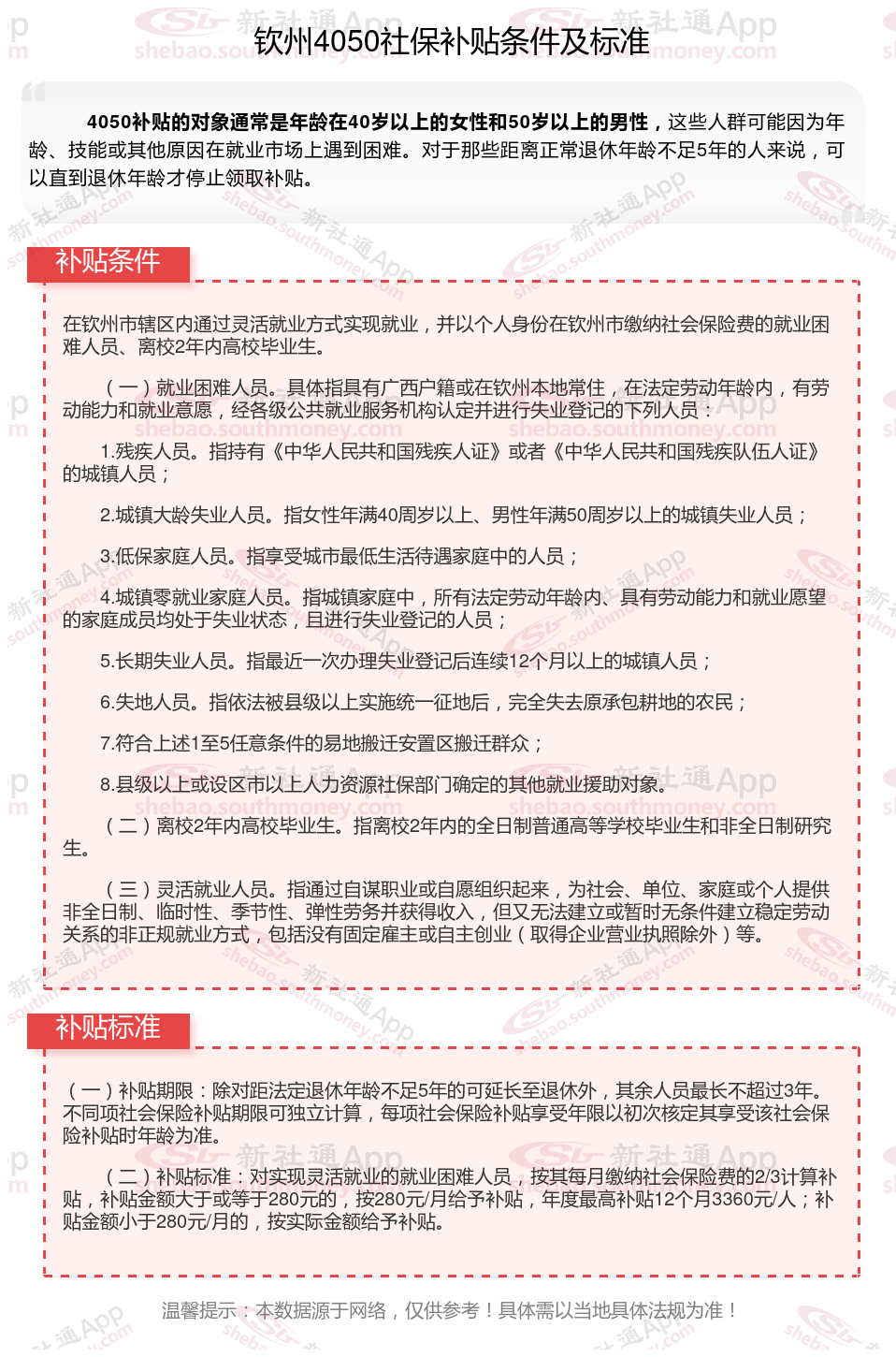 2024钦州灵活就业4050社保补贴是一项面向特定年龄段的就业困难人群的社会保险补贴。