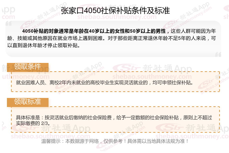 2023~2024年张家口4050补贴达到什么条件才能领取 张家口4050补贴每月多少钱?