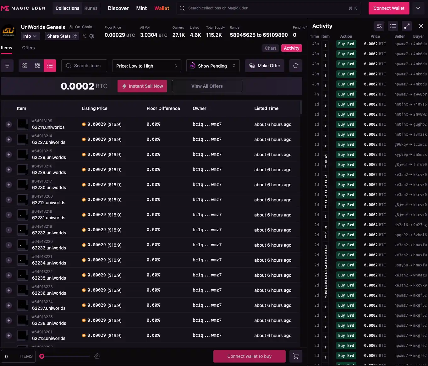 域名 (.uniworlds):.uniworlds 域名类似于传统的 .sats 域名协议。每个域名对应一个 3D 虚拟空间,拥有者可以完全掌控这个空间的内容和布局。域名不仅是虚拟空间的门钥匙,更是用户展示和管理其数字资产的核心工具。目前,.uniworlds 域名已经无法通过铸造获得,用户只能通过市场进行购买。目前,这些域名,地板价约为 0.00029 BTC(约 20 美元)。