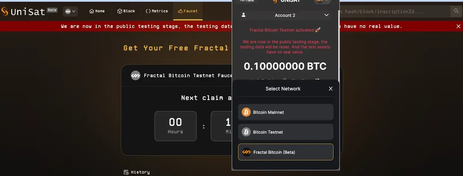 在使用 Fractal Bitcoin 网络之前,用户可以通过其测试网来熟悉和体验该系统的功能。测试网为开发者和用户提供了一个安全的环境来测试和验证交易,而无需在主网中承担风险。要参与 Fractal Bitcoin 的测试网,用户需要获取测试网代币 FBTC,这些代币可以通过以下渠道免费领取,通常称为「领水」。
