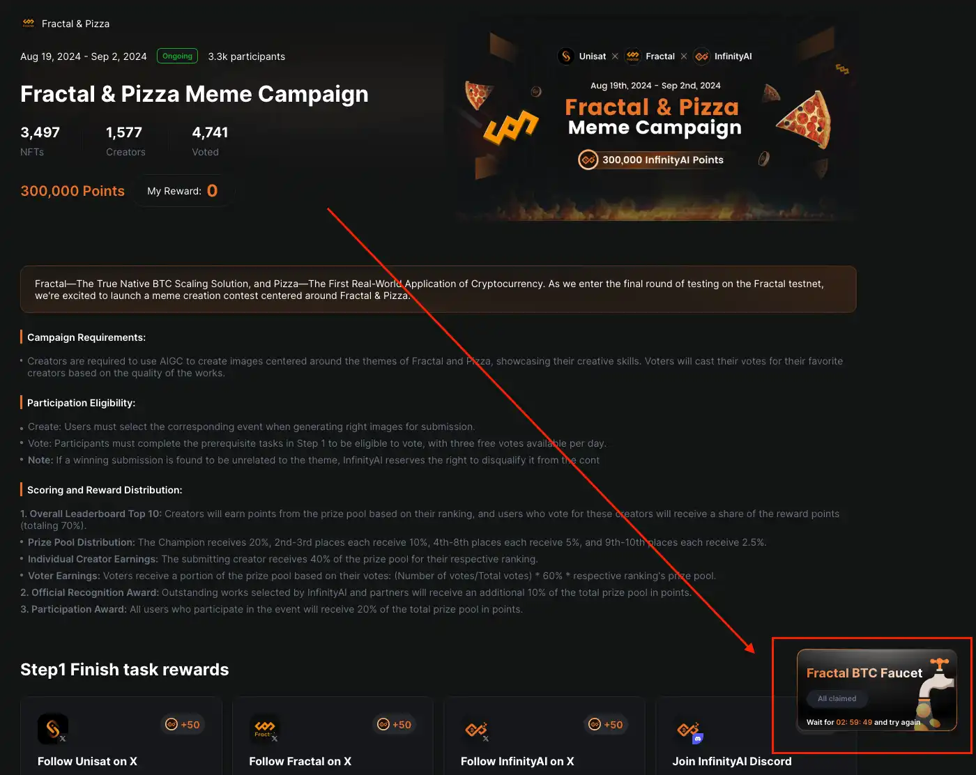 InfinityAI 是目前 Fractal Bitcoin 上非常火热的项目之一,前文提到过官网可以领水,也有很多测试任务可以做。
