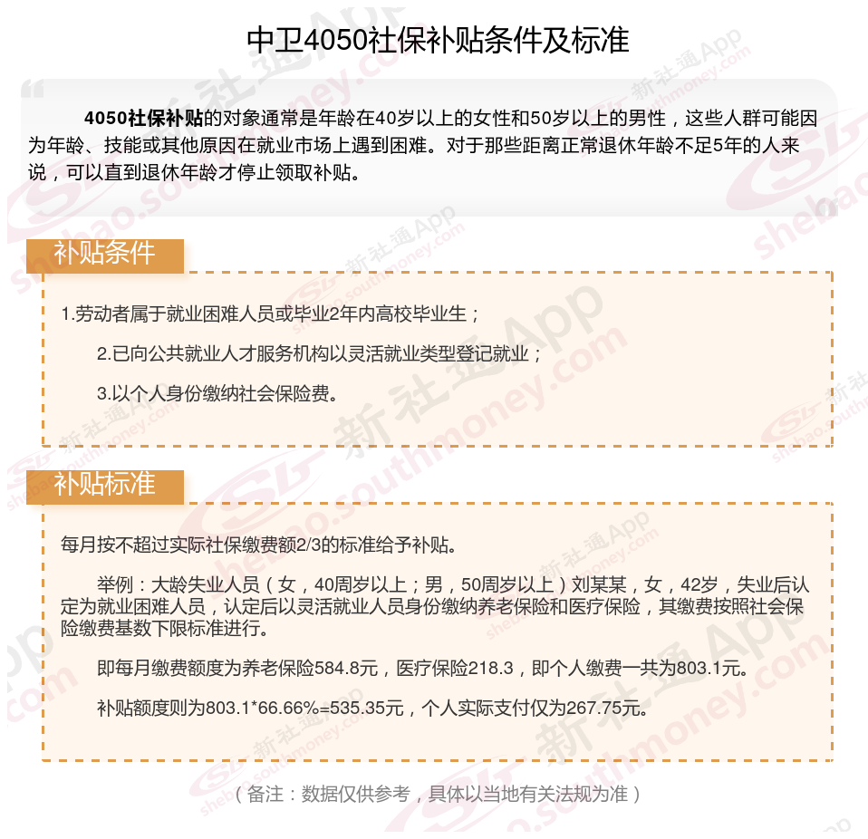 2024中卫灵活就业4050社保补贴是一项面向特定年龄段的就业困难人群的社会保险补贴。