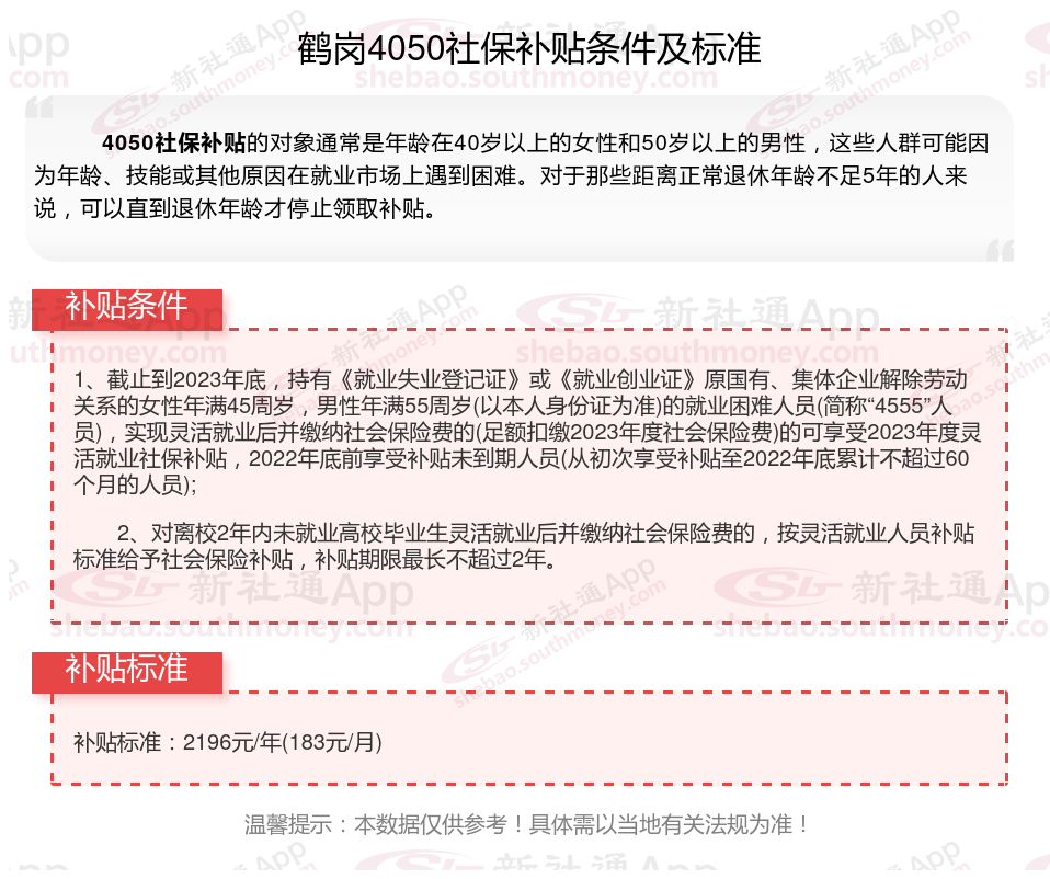 一、2023-2024年鹤岗4050社保补贴标准及条件,最新如下