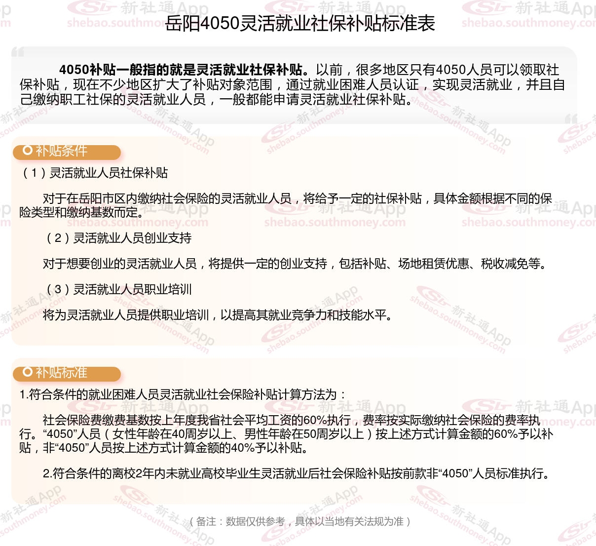 二、岳阳4050社保补贴标准及条件2023-2024年,最新如下