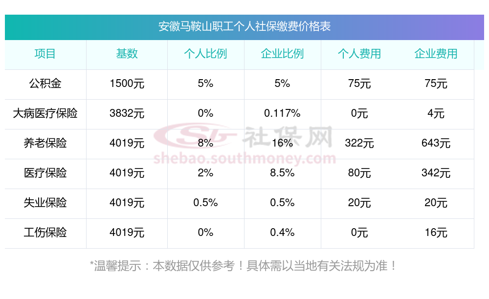 安徽马鞍山2024社保缴费价目表,安徽马鞍山社保养老保险、医疗保险缴费基数最新一览