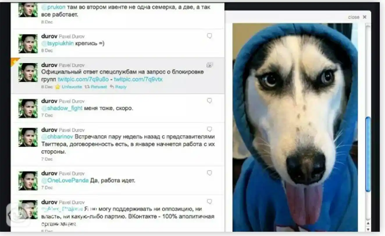 杜罗夫回复了一张吐着舌头、穿着蓝色卫衣的小狗照片,怕对方看不懂,还加了一句:「这就是我的答复。」