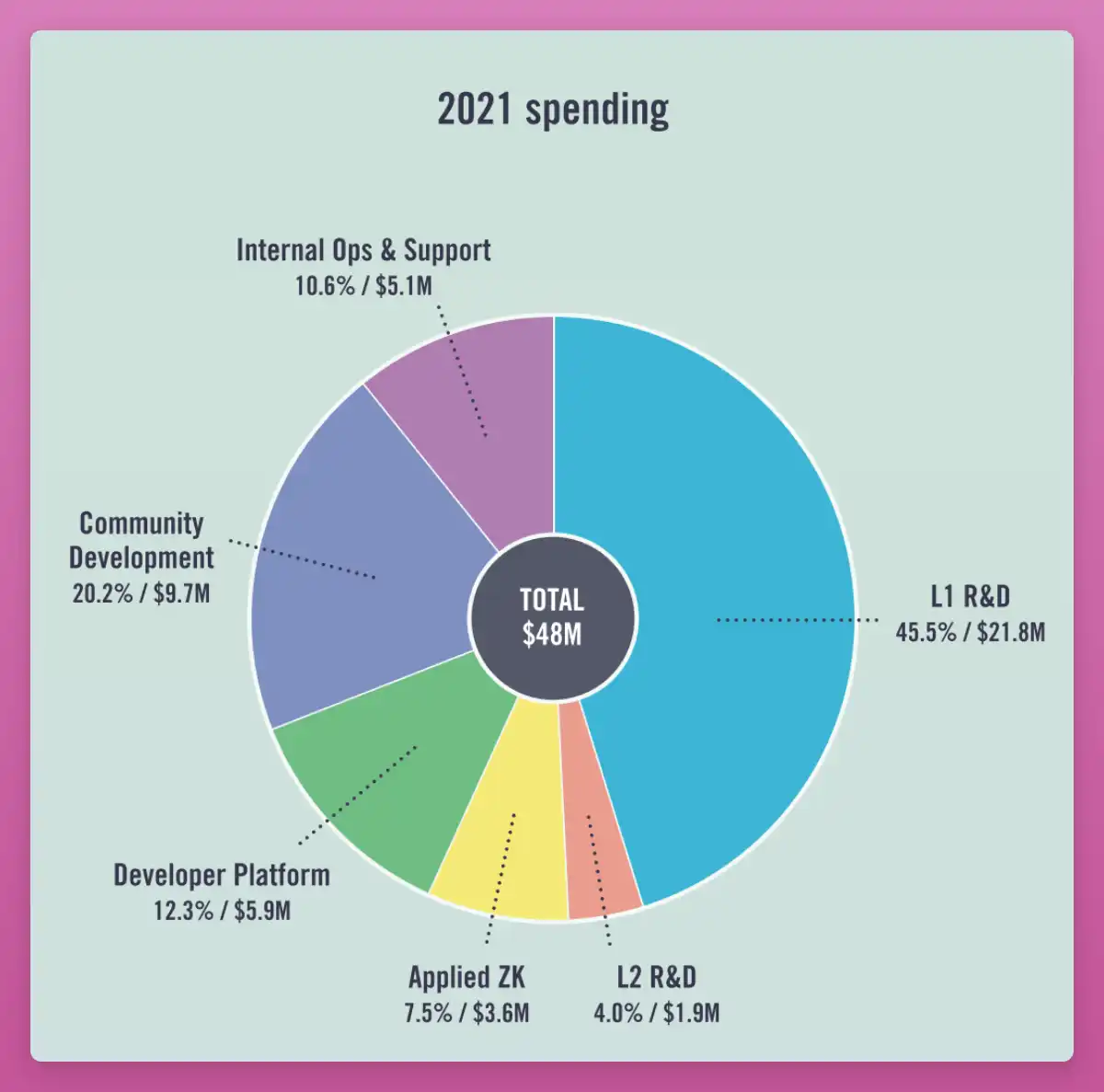 因此,2021 年总支出的 10% 用于支付开发人员的工资,以及支持维护以太坊基金会。