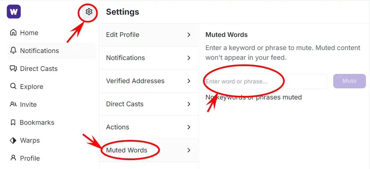 A:如图所示,在设置栏中选择禁用词,这样就可以屏蔽含有该词的内容。