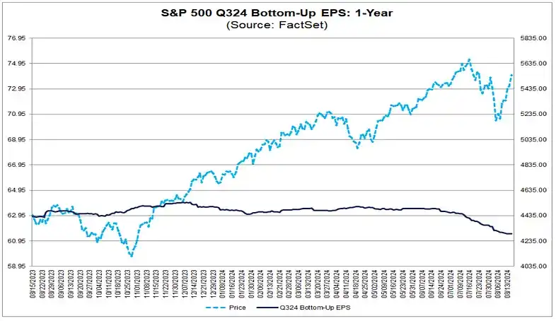 对于美股来说,当前市场仍处于牛市,主要趋势依然向上。然而到年底的几个月交易环境将会较为缺乏业绩主题,市场的上行和下行空间都会受到限制。市场不断下修 Q3 的盈利预期: