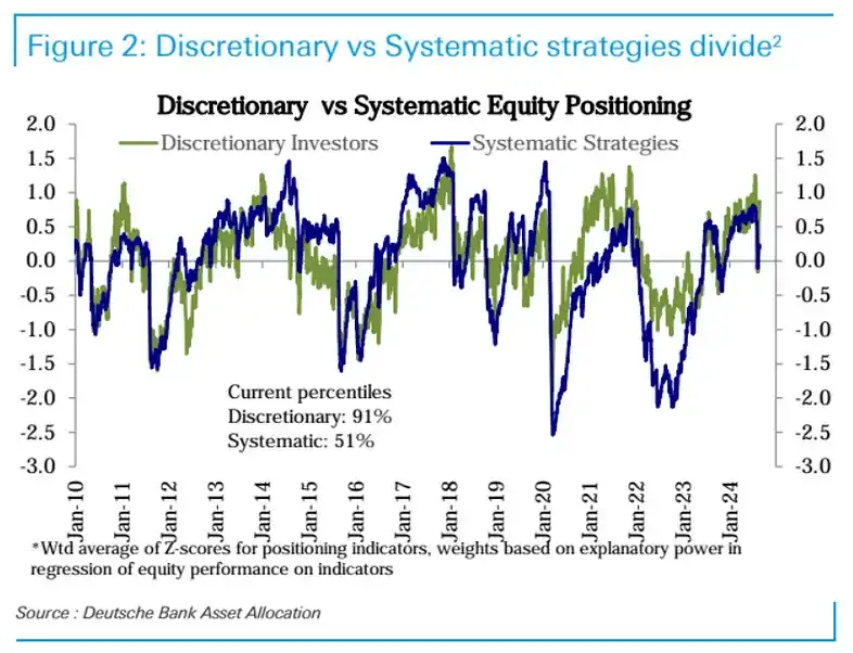 股票仓位来看,夏季早些时候,主观策略资金做得相当好,及时减仓,并在 8 月份有了进攻的机会,下图可以看到绿线主观策略资金最近补仓的速度非常快,仓位已经又回到了历史 91 百分位,但系统性策略资金反应慢了一些目前只有 51 百分位: