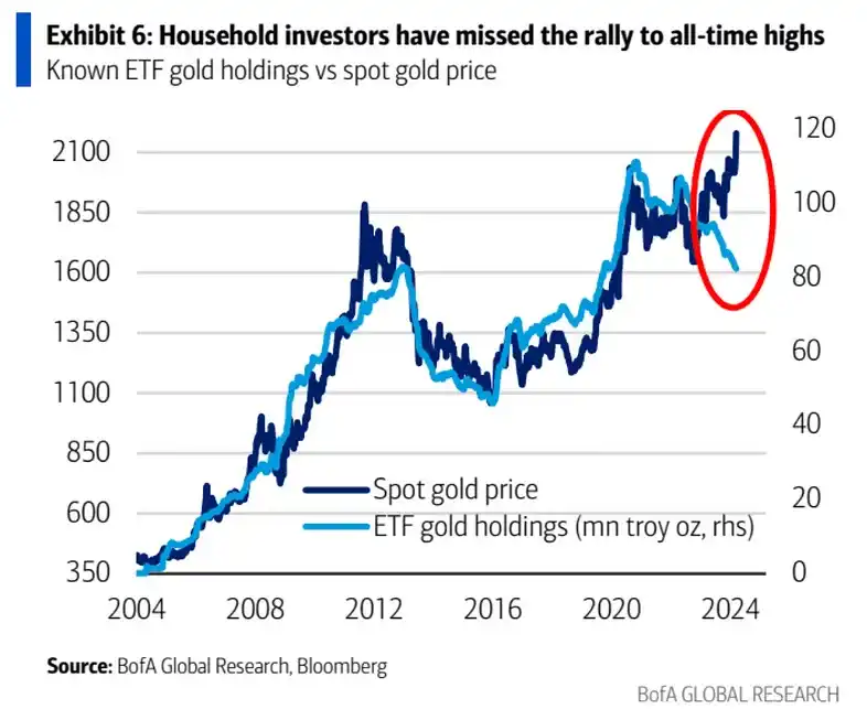从黄金市场的经验来看大部分时候价格与 ETF 的持仓量呈正相关,但最近两年市场结构发生变化,大部分散户甚至机构投资者都错过了黄金的涨幅,而主要购买力量变成了央行: