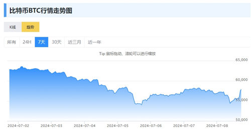BTC比特币= $57,806.00 实时更新至2024年7月8日下午17:29:45