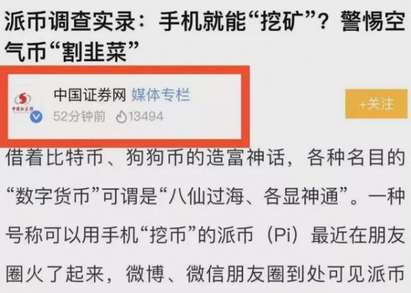 早在很早的时候,新华社的官方媒体就放出了对派币的相关评论,该评论的发表题为:《虚拟货币乱象丛生,韭菜收割机,亟待整治》的相关文章,在文章中就讲到了:“派币PI到处拉人头,小心被割韭菜”的相关内容。