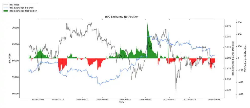 4. 交易所净头寸整体呈现 BTC 中量流出,BTC 中量流⼊。