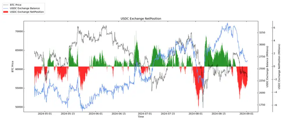 USDC 交易所净头寸大量流失。