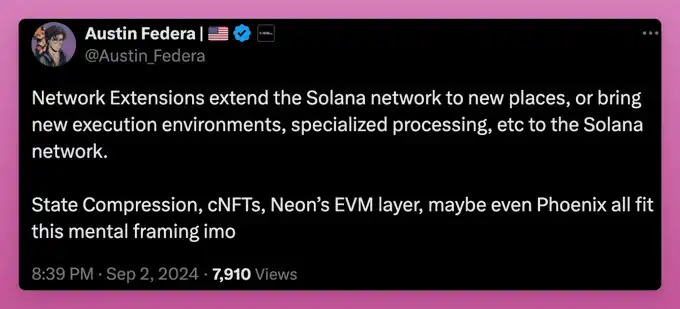 Austin 自己提到,网络扩展「带来了新的执行环境、专业化处理等」,对普通散户投资者来说,这听起来更像是一个 L2。