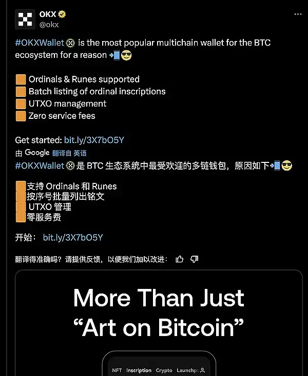 ● OKX @OKXWeb3_CN 是 BTC 生态系统中最受欢迎的多链钱包,支持序数和符文,批量列出序数铭文,UTXO 管理,零服务费。配图显示 OKX APP 已将 Atomicals 单独一个板块,此前 Atomicals 社区公开信提出过该建议。