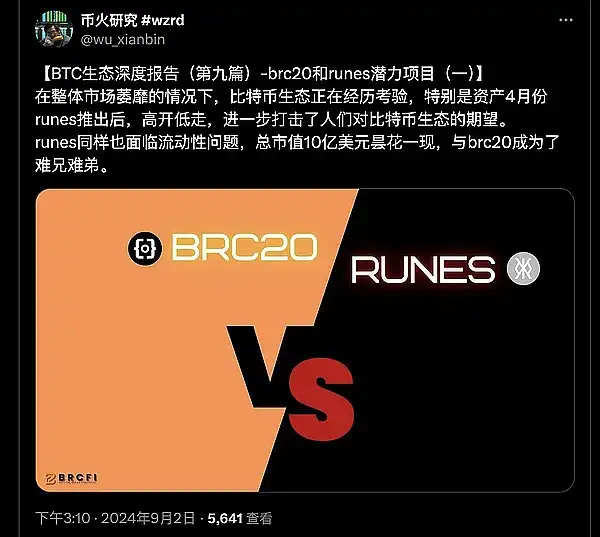 ● 一份 BRC20,Runes 链上数据和头部 Token 对比分析文章。总结,BRC20 mem 文化基因厚潜力十足,Runes 链上数据更活跃。by @wu_xianbin