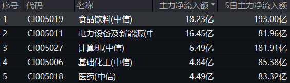资金面上,主力资金再度大举加码吃喝板块。Wind数据显示,截至9:48,食品饮料板块获主力资金净流入额超过18亿元,净流入额在30个中信一级行业中高居首位;近5日,食品饮料板块累计吸金额更是接近200元,位居全行业(中信一级)第2。
