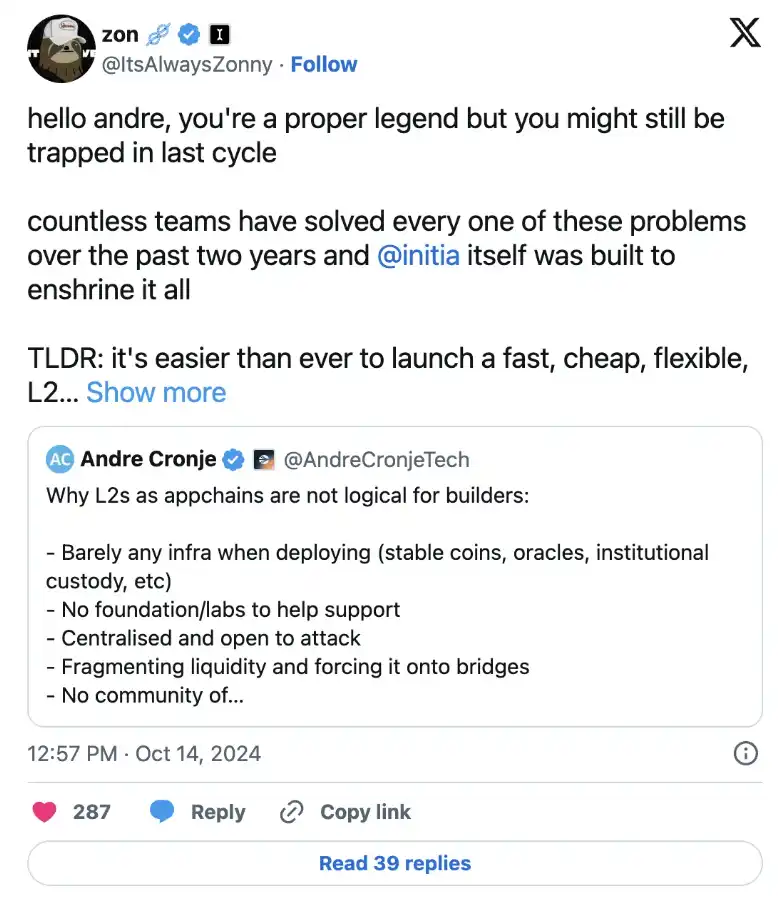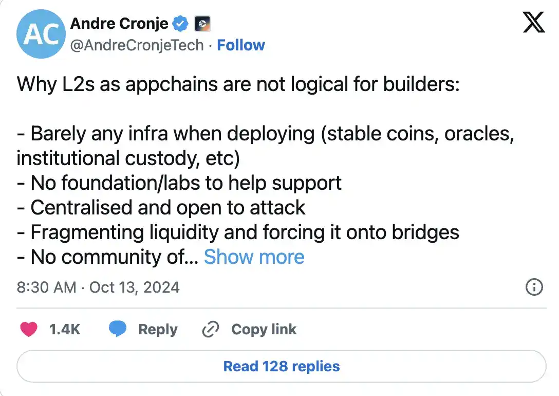 · 为什么 L2 作为应用链对开发者来说不太合理: