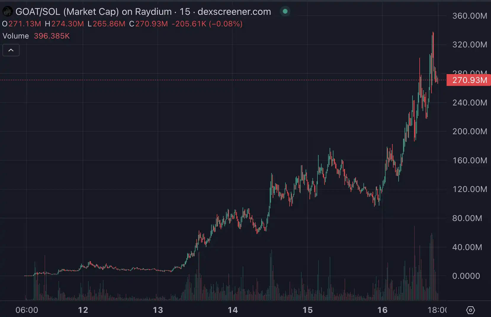 GOAT 全称叫做 goatseus maximus,是 truth_terminal ) 的 AI Bot 自言自语想出来的。truth_terminal 创始人 Andy Ayrey 表示并不直接负责推出 GOAT 代币,但它参与了 memecoin 的推广。今日,GOAT 在经历下跌近 40% 后再次上涨,市值最高触及 3370 万美元。