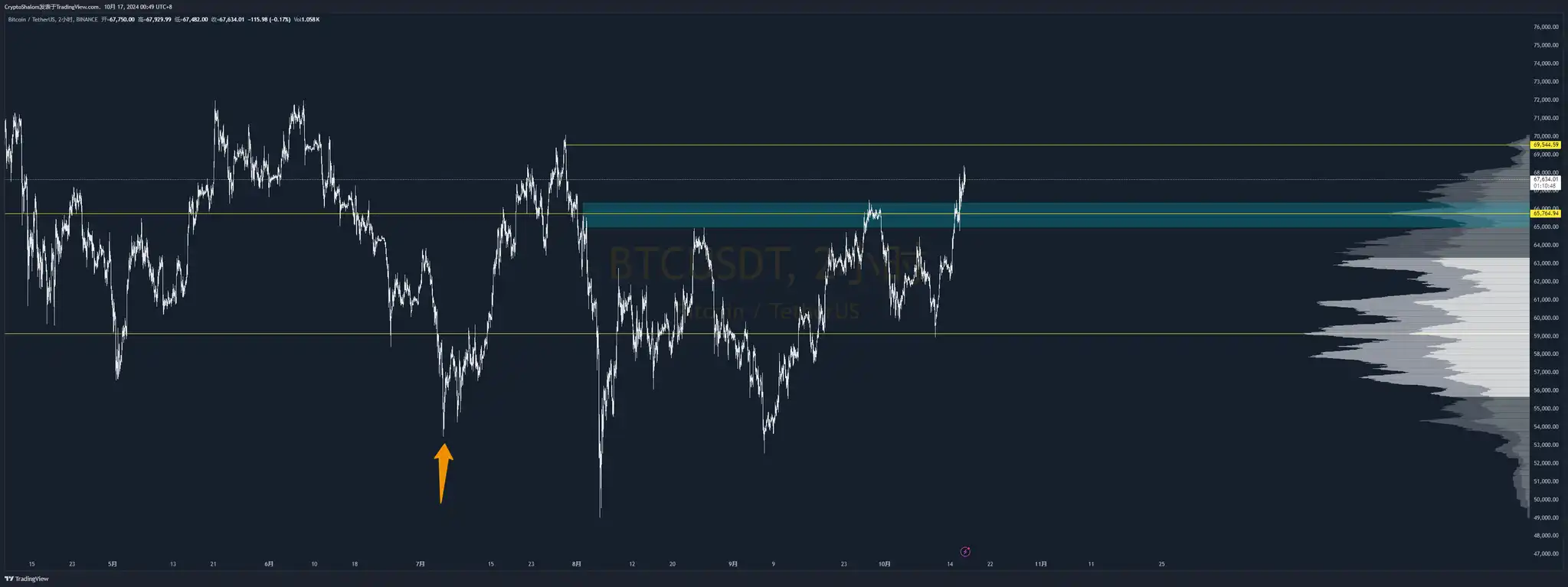 2. 上方阻力 69544,潜在的目标,注意潜在二字