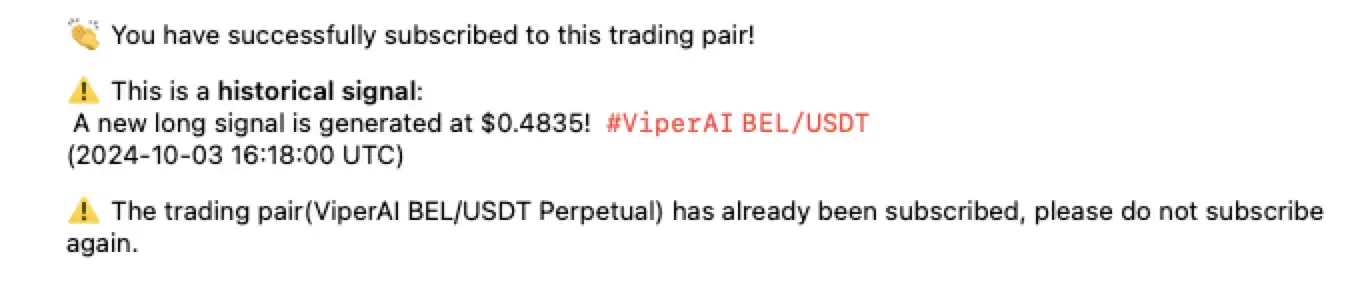 Bella Signal Bot 的功能很简单,用一句话说就是可以持续监控市场数据、分析趋势并为选定的永续代币对,生成精确的「多头」和「空头」信号。