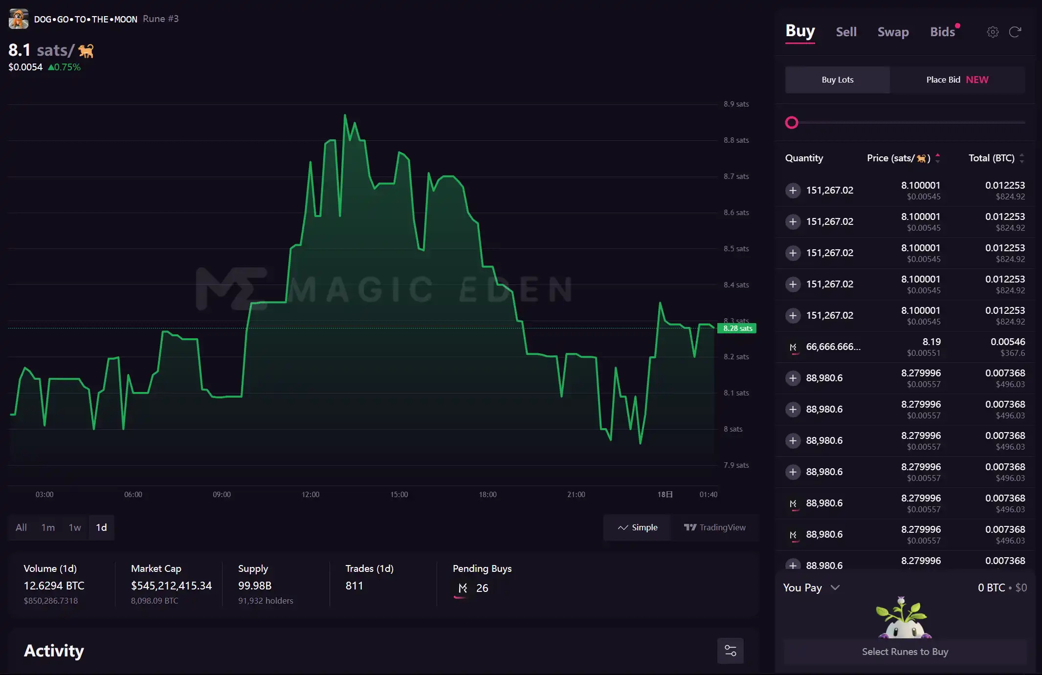 符文在 Magic Eden 上的购买界面,像极了没有图的 NFT