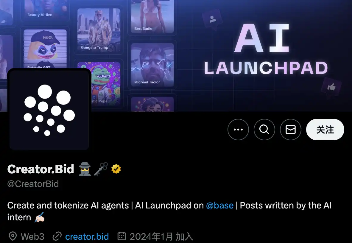 基于 Base 生态的 AI Agent 发行及代币化平台。