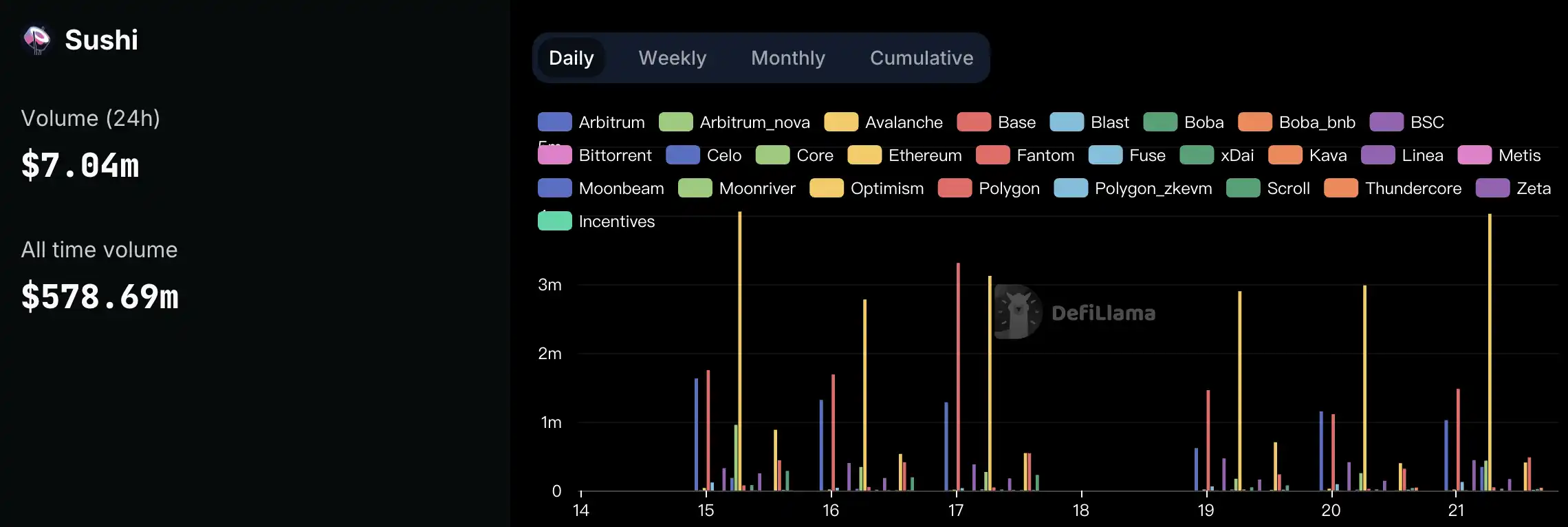 每日 DeFi 市场资金及交易量异动情况,按 DEX 聚合器及 Perp DEX 交易量及增长幅度筛选并排列