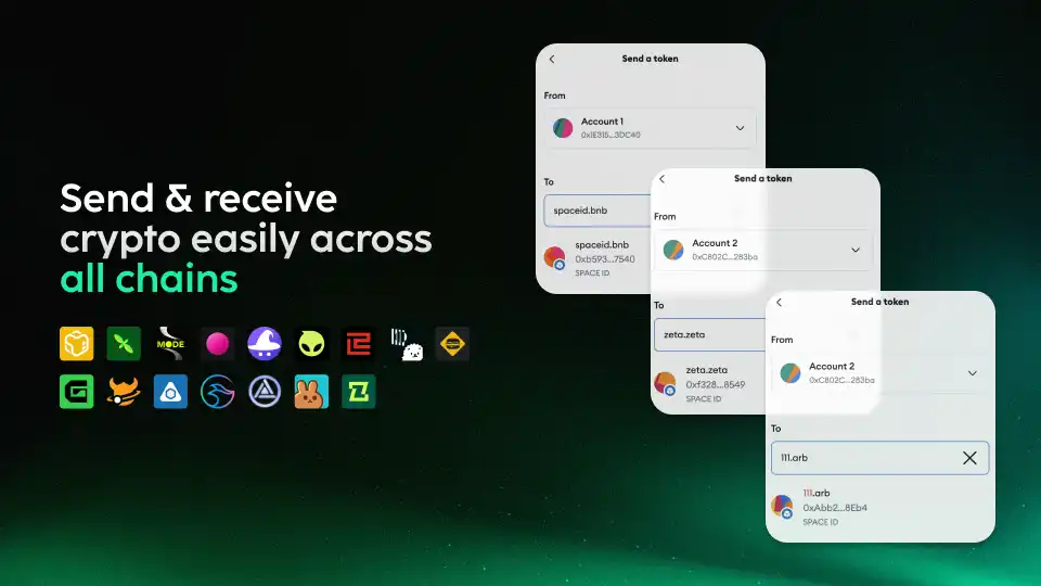 SPACE ID Snaps 适用于所有 EVM 兼容区块链,用户可以在一个钱包中管理和存储多链用户名。SPACE ID 用户名可以完全替代繁琐的加密地址,用于发送和接收加密货币,确保交易的安全性和可验证性。