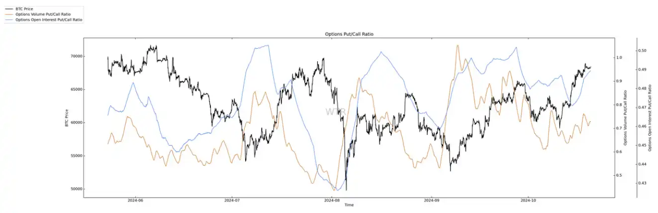 期权成交量少量增加,看跌期权⽐例少量增加。