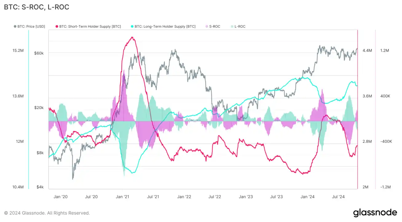 (下图 ⻓期、短期持有者净头⼨变化)