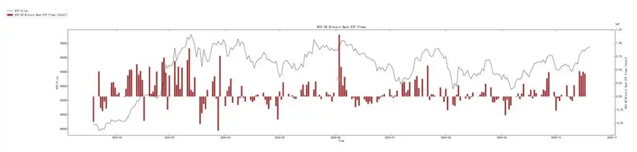 1. ⾃10⽉11⽇以来,美国现货 BTC ETF 净流⼊额已超过 16 亿美元。