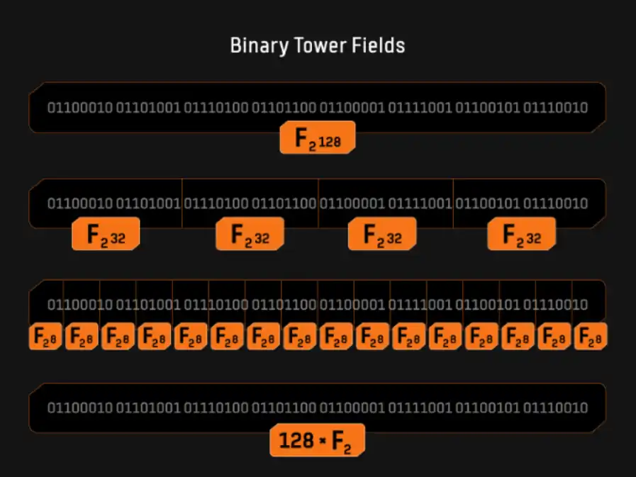 塔式二进制域是实现快速可验证计算的关键,主要归因于两个方面:高效计算和高效算术化。二进制域本质上支持高度高效的算术操作,使其成为对性能要求敏感的密码学应用的理想选择。此外,二进制域结构支持简化的算术化过程,即在二进制域上执行的运算可以以紧凑且易于验证的代数形式表示。这些特性,加上能够通过塔结构充分利用其层次化的特性,使得二进制域特别适合于诸如 Binius 这样可扩展的证明系统。
