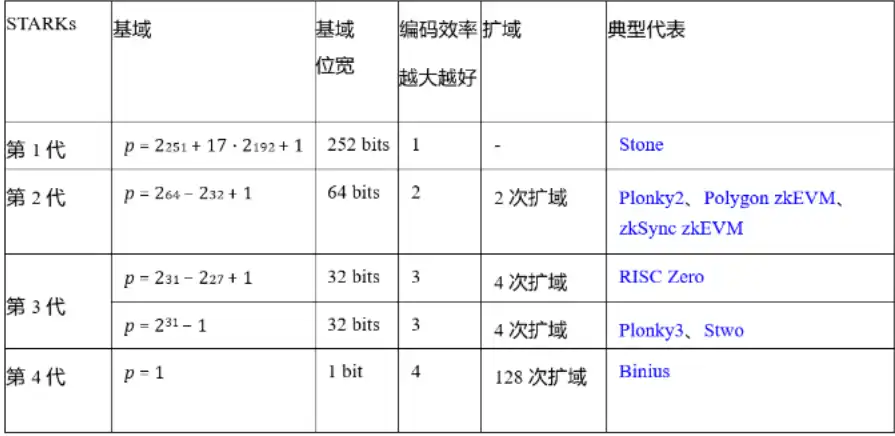 区别于基于椭圆曲线的 SNARKs,可将 STARKs 看成是 hash-based SNARKs。当前 STARKs 效率低下的一个主要原因是:实际程序中的大多数数值都较小,如 for 循环中的索引、真假值、计数器等。然而,为了确保基于 Merkle 树证明的安全性,使用 Reed-Solomon 编码对数据进行扩展时,许多额外的冗余值会占据整个域,即使原始值本身非常小。为解决该问题,降低域的大小成为了关键策略。