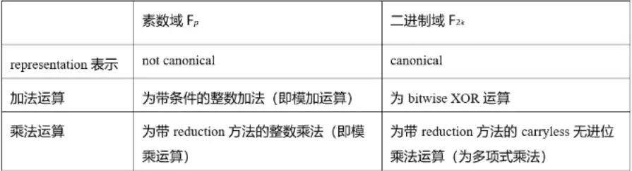 其中“canonical”是指在二进制域中元素的唯一且直接的表示方式。例如,在最基本的二进制域 F2 中,任意 k 位的字符串都可以直接映射到一个 k 位的二进制域元素。这与素数域不同,素数域无法在给定位数内提供这种规范的表示。尽管 32 位的素数域可以包含在 32 位中,但并非每个 32 位的字符串都能唯一地对应一个域元素,而二进制域则具备这种一对一映射的便利性。在素数域 Fp 中,常见的归约方法包括 Barrett 归约、Montgomery 归约,以及针对 Mersenne-31 或 Goldilocks-64 等特定有限域的特殊归约方法。在二进制域 F2k 中,常用的归约方法包括特殊归约(如 AES 中使用)、Montgomery 归约(如 POLYVAL 中使用)和递归归约(如 Tower)。论文《Exploring the Design Space of Prime Field vs. Binary Field ECC-Hardware Implementations》指出,二进制域在加法和乘法运算中均无需引入进位,且二进制域的平方运算非常高效,因为它遵循 (X Y )2 = X2 Y 2 的简化规则。