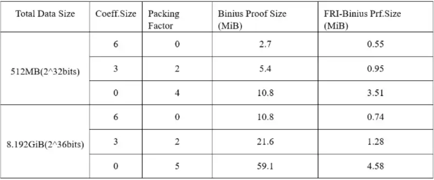 借助 FRI-Binius,可将 Binius 证明大小减少一个数量级。这使得 Binius 的证明大小更加接近最先进的系统,同时保持与二进制域的兼容性。专为二进制域定制的 FRI 折叠技术,加上代数打包和 SumCheck 的优化,使得 Binius 能够在保持高效验证的同时,生成更加简洁的证明。