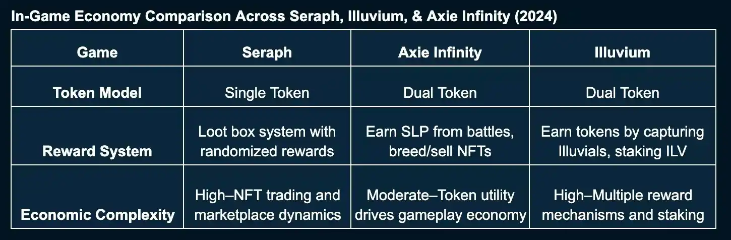 来源:Seraph、Illuvium 和 Axie Infinity 的游戏内经济比较(2024)