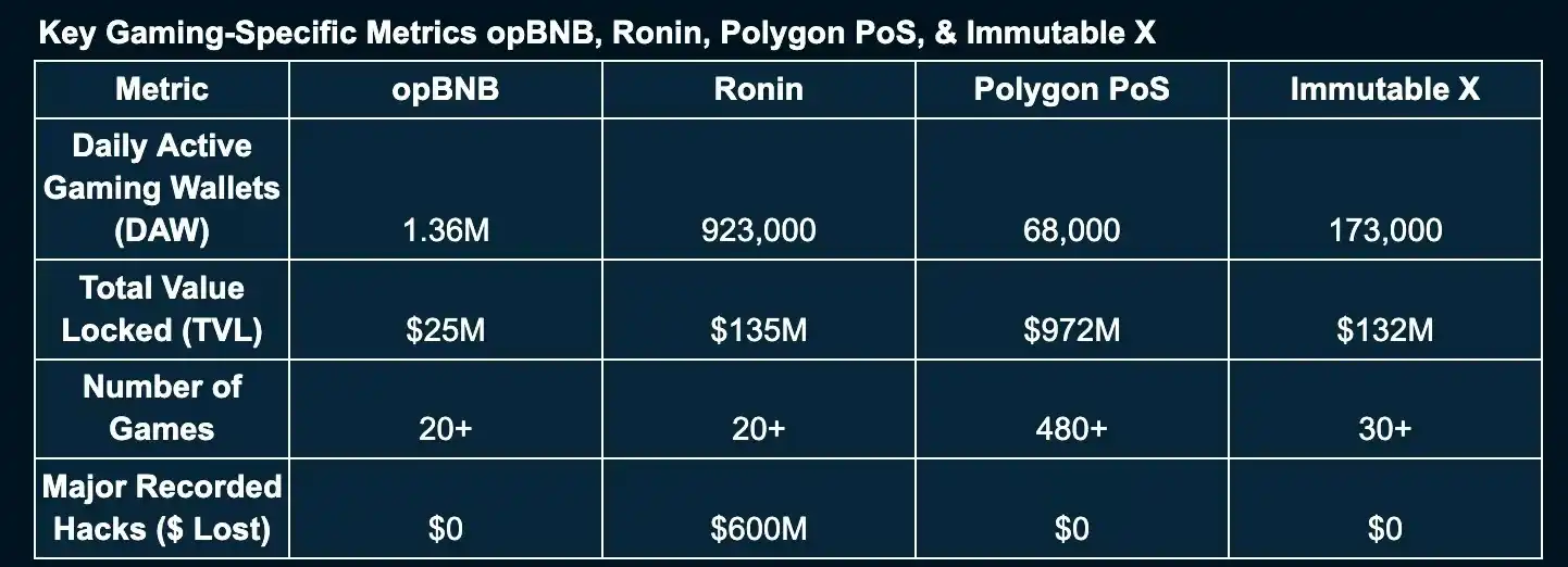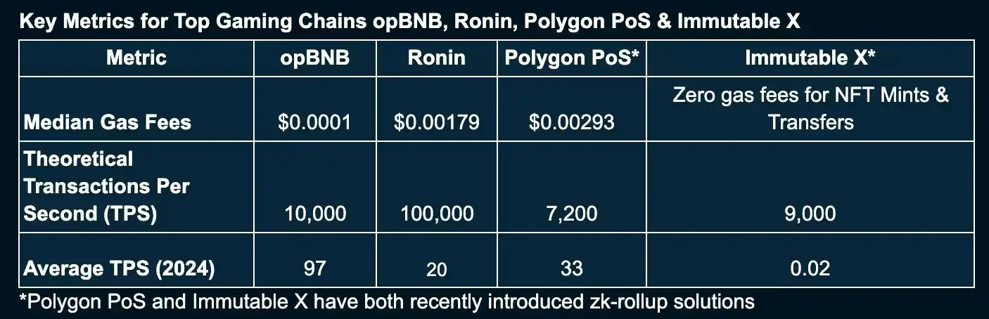 来源:顶级游戏链的关键指标:opBNB、Ronin、Polygon PoS 和 Immutable X