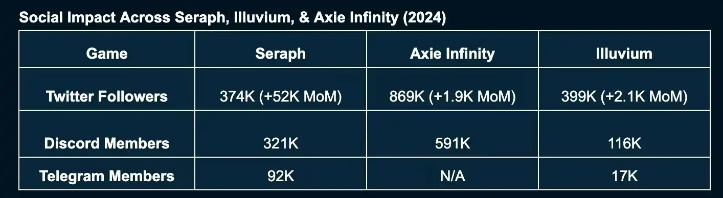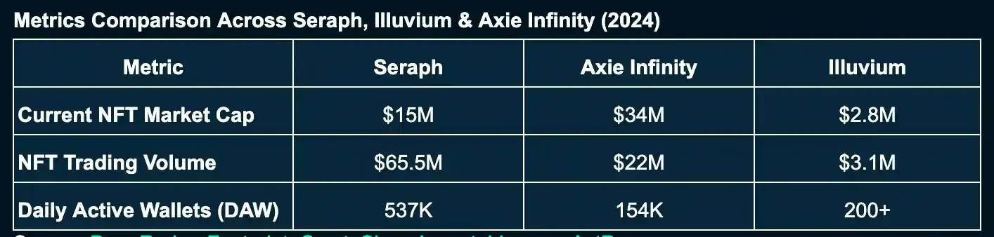 来源:Seraph、Illuvium 和 Axie Infinity 的指标比较(2024)